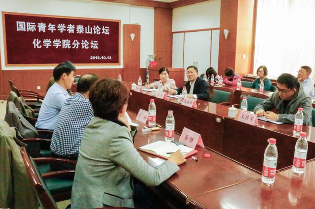 10月13日,在文理大楼811会议室,化学院举办国际青年学者泰山论坛化学专题论坛,来自中科院北京化学研究所、中科院长春应用化学研究所、华南农业大学、西班牙巴塞罗那化学研究所的四位青年学者与化学院青年教师一起,交流探讨化学及材料等相关学科开展科学研究的经验。