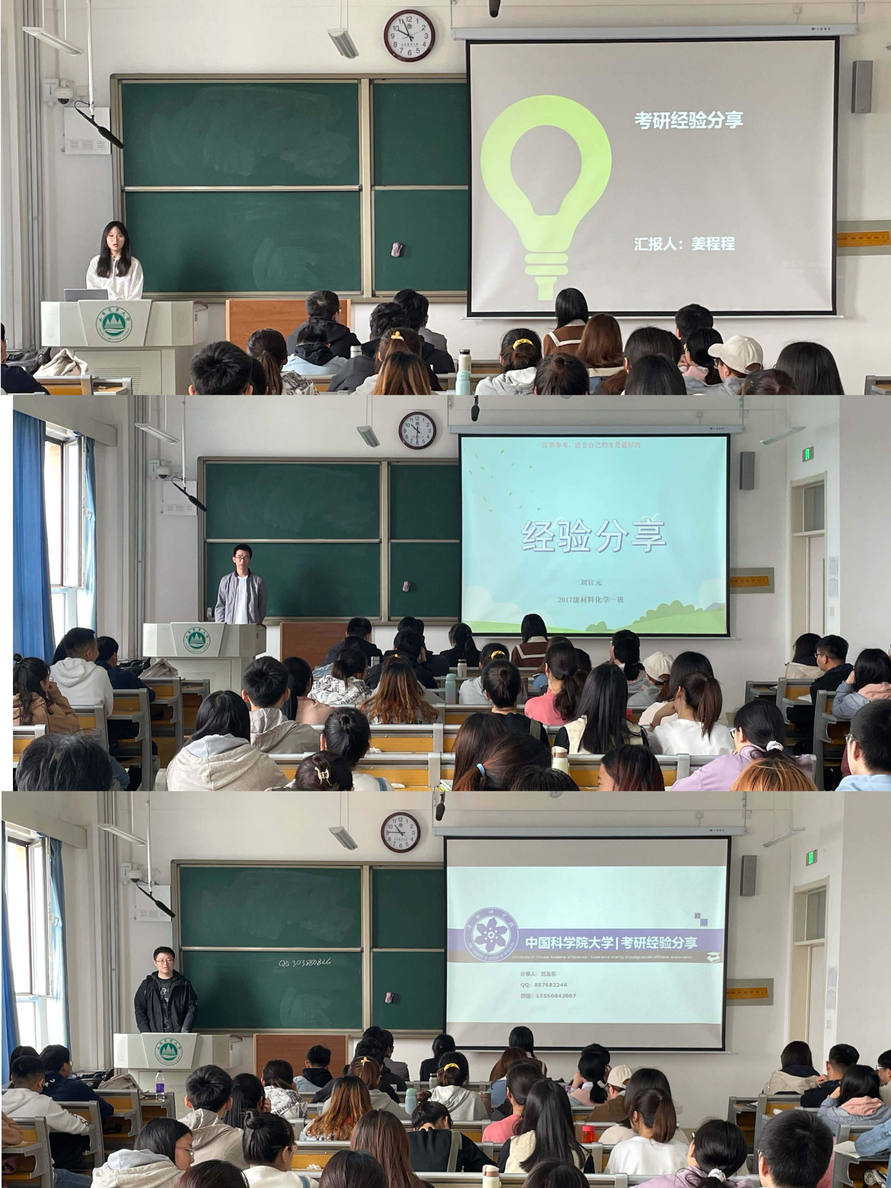 为引导2022年考研学子明确考研目标,合理规划,积极备考,4月11日上午,化学学院邀请已被山东农业大学、中科院上海物化所、天津大学、北京化工大学等院校拟录取的6名学生为2018级学生分享考研经验和要点技巧。学院团委杨青青、赵伟烨两位老师及2018级全体学生参加活动。