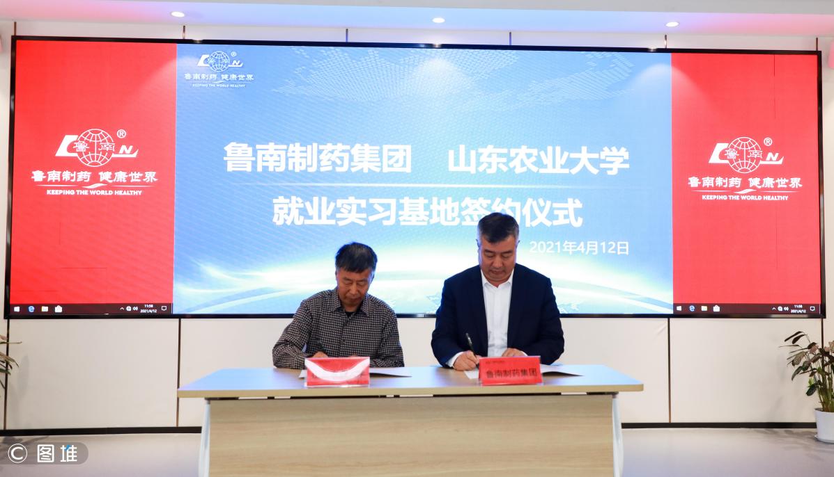 在签约和揭牌仪式上,鲁南制药集团副总经理李宝杰对我校师生到来表示欢迎,并从企业实力、人才建设、发展前景、企业文化、用人需求等方面向师生们详细介绍了鲁南制药集团。他表示,校企共建大学生就业实习基地,为双方深入合作搭建了平台,既有利于高校大学生的成长成才,也有助于鲁南制药集团的跨越发展,此次合作必将结出丰硕成果。接下来,艾仕云就办学情况、学科建设、人才培养方面对学院进行了介绍,他指出,校企双方要本着“合作育人、互利互惠、共同发展”的原则,取长补短,以共建就业实习基地为契机,加强校企之间的联系,拓展大学生实习、就业的深度与广度,建立校企合作育人的长效机制。随后,双方签署了合作协议,山东农业大学就业实习基地在鲁南制药集团正式挂牌。