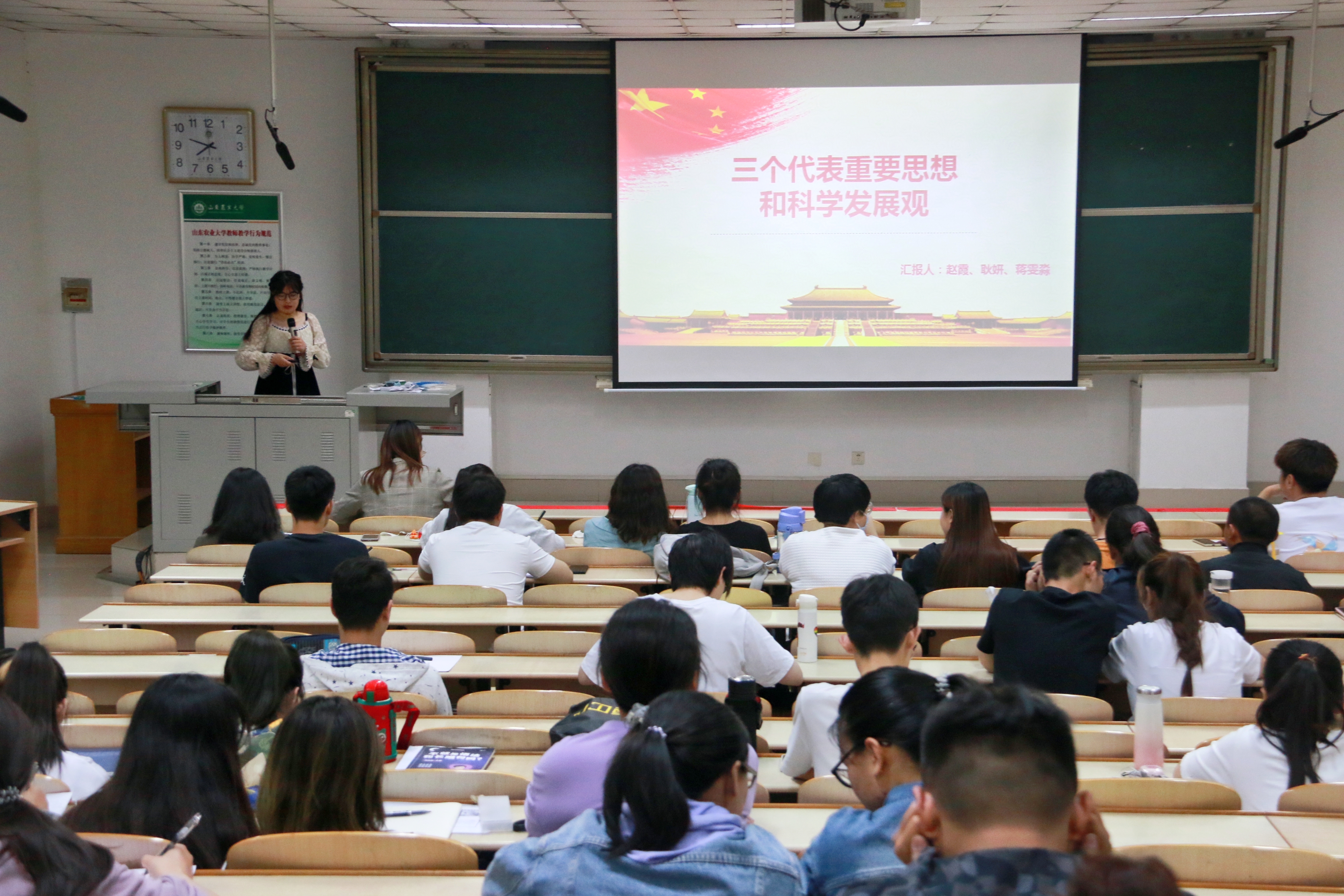 最后,辅导员衣凌云老师从入党的标准及条件,发展对象的确定、培养和考察,预备党员的接受,预备党员的管理、考察和转正四个方面详细介绍了发展党员入党的二十五个基本流程。更加明确规范了入党的步骤,激发了同学们“以实际行动积极向党组织靠拢”的决心。