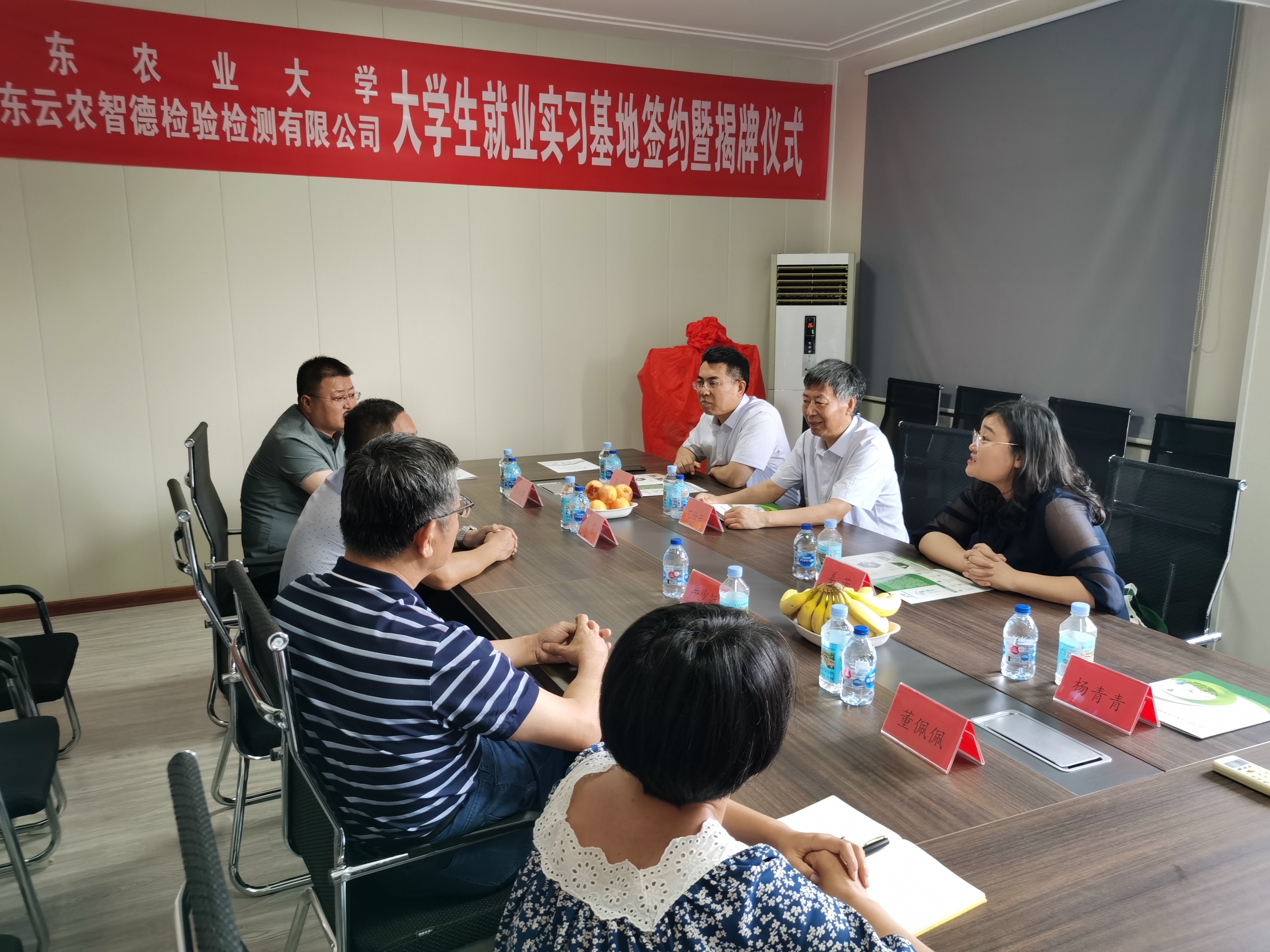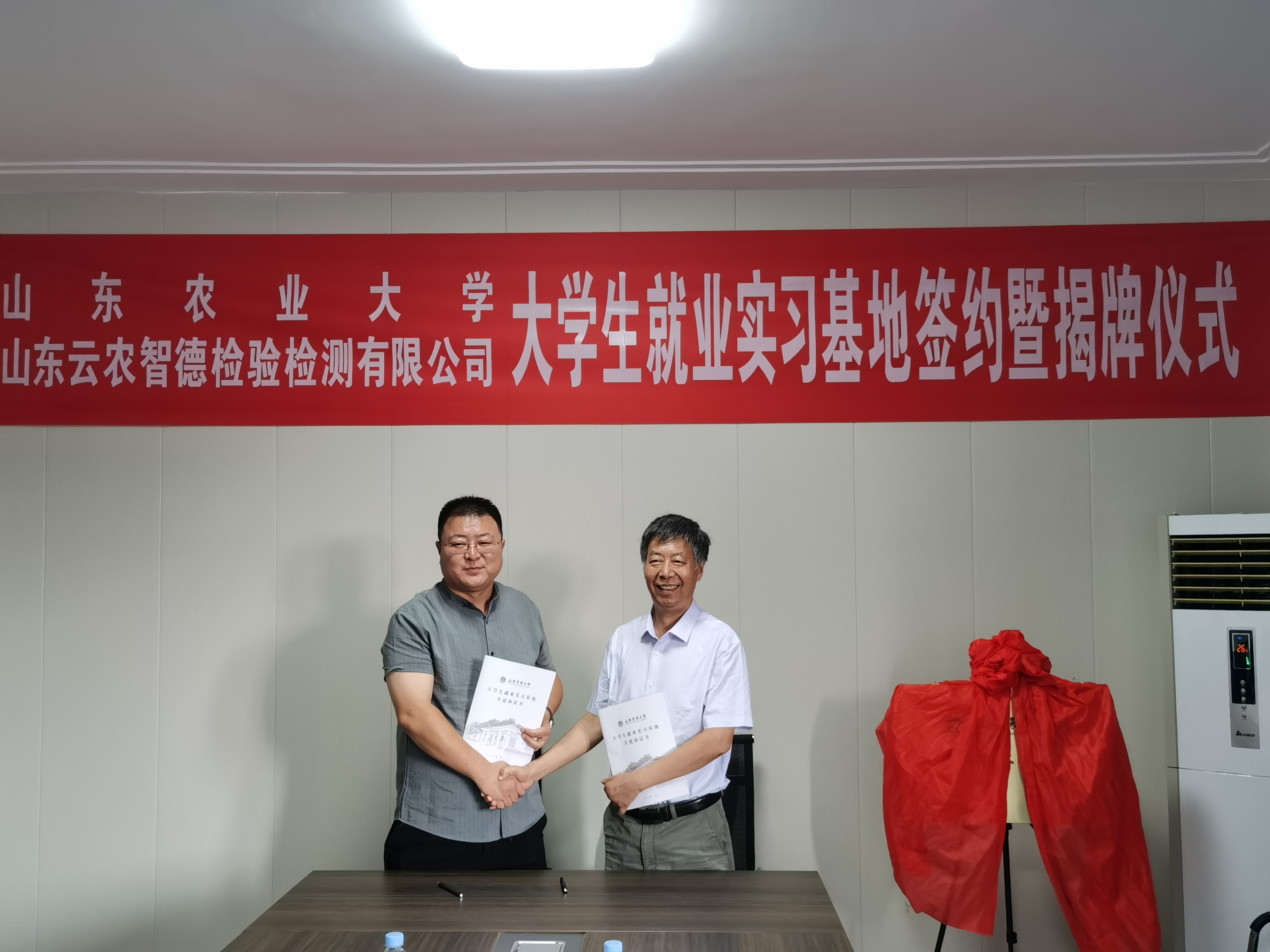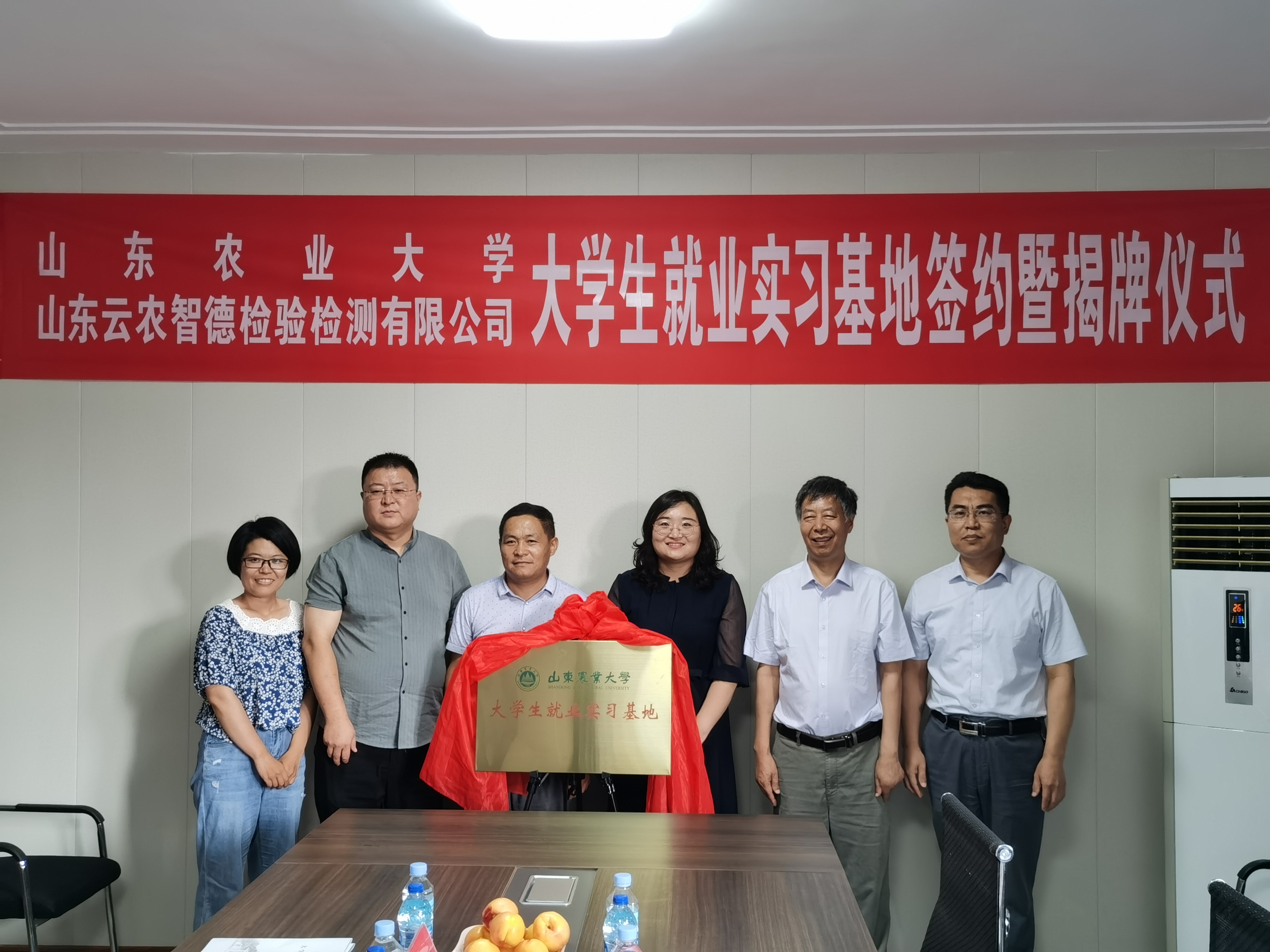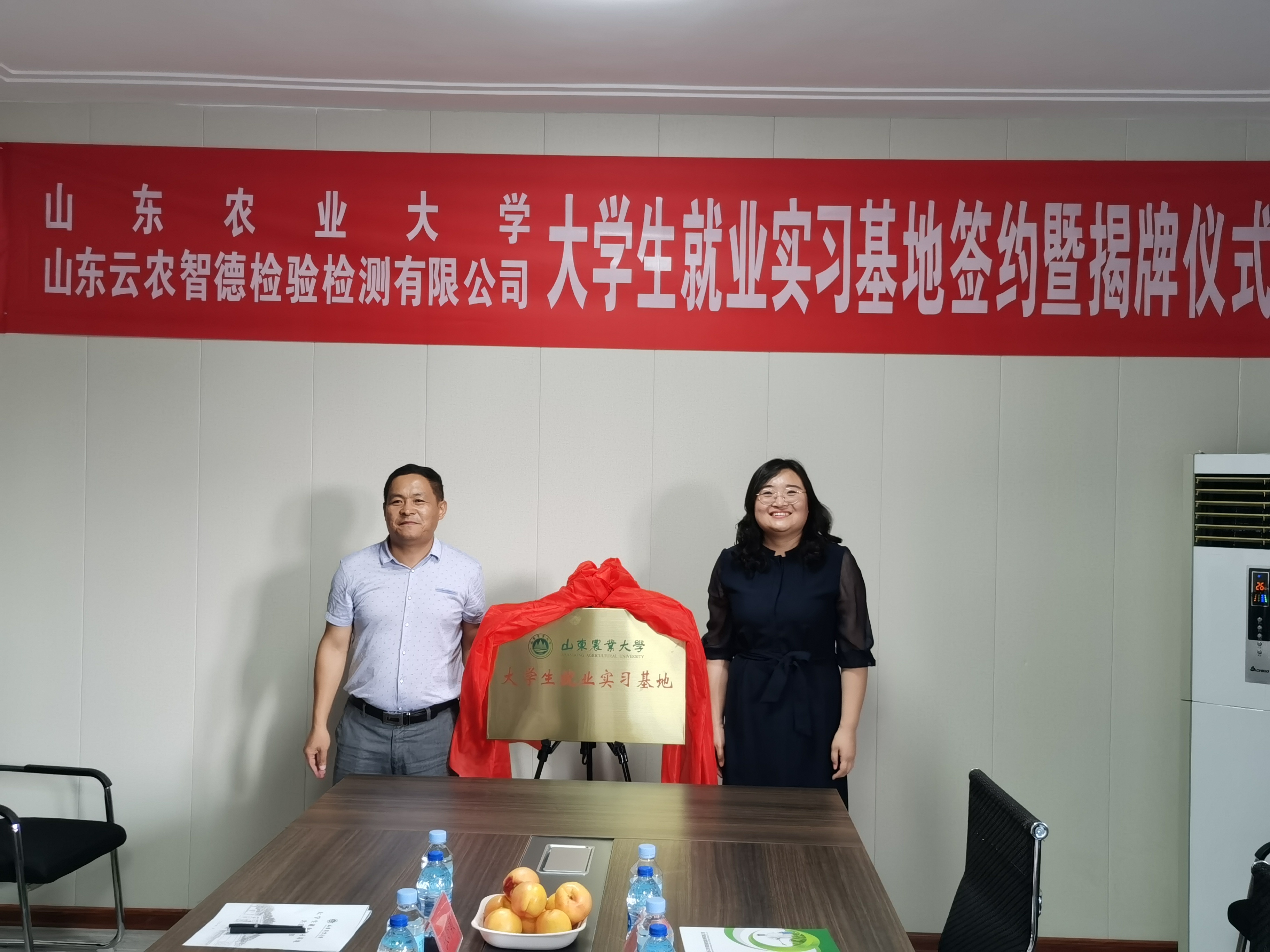 7月8日,化学学院在山东云农智德检验检测中心建立大学生就业实习基地。学院院长艾仕云与山东云农智德检验检测有限公司副总张昕颖共同签署协议。学工处副处长姜芳与山东云农智德检验检测有限公司总经理刘震共同为基地揭牌。