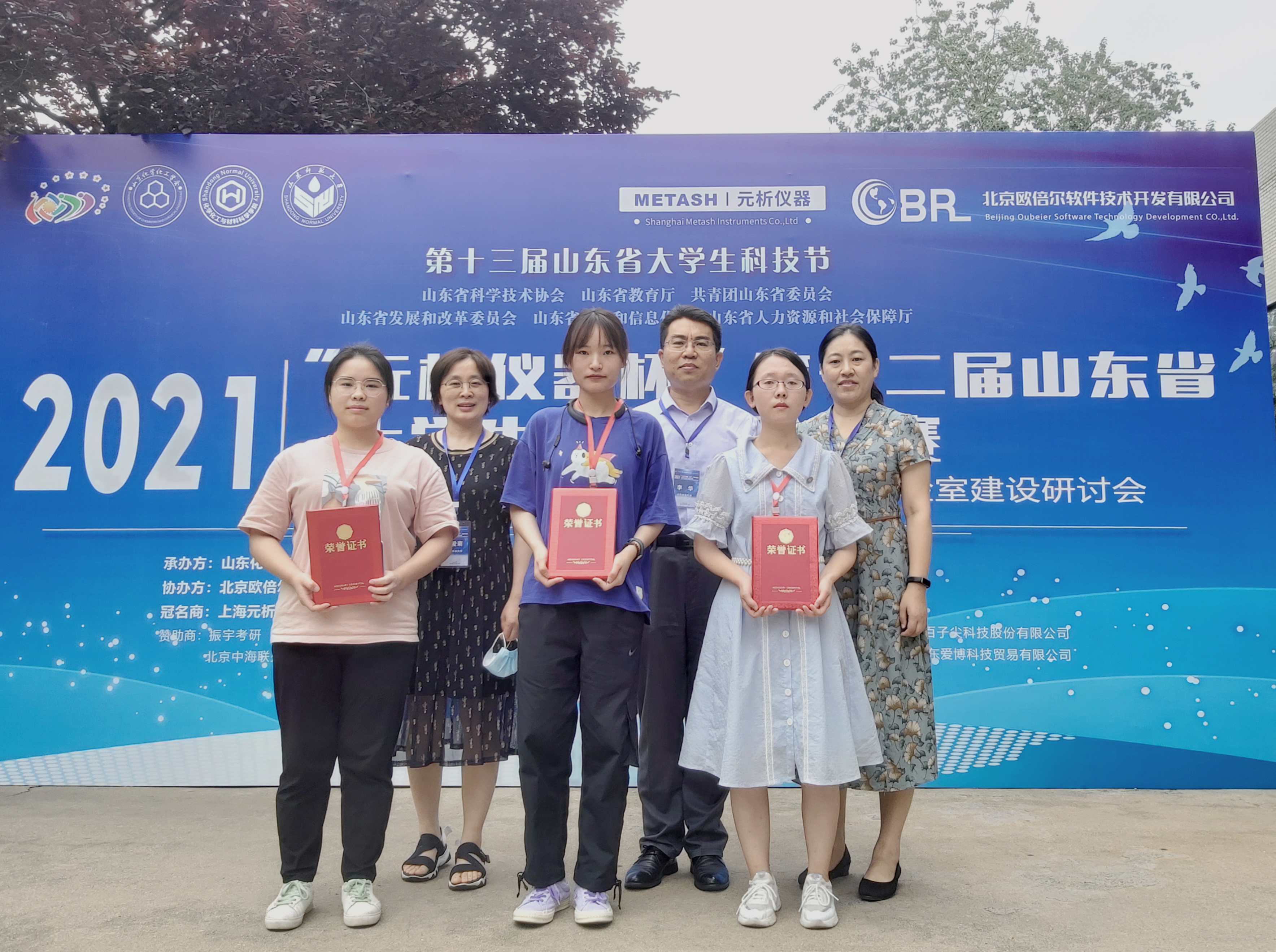 “元析仪器杯”第十二届山东省大学生化学实验大赛于7月19日至22日在山东师范大学举行。本次大赛共有来自省内33所高校的101名学生参加。我院党委副书记李华、基础化学系系主任张丽丽和实验中心时爱菊带领3名2018级学生参加大赛。其中,耿紫萱同学荣获一等奖,李聪慧和李仕侣同学荣获二等奖。