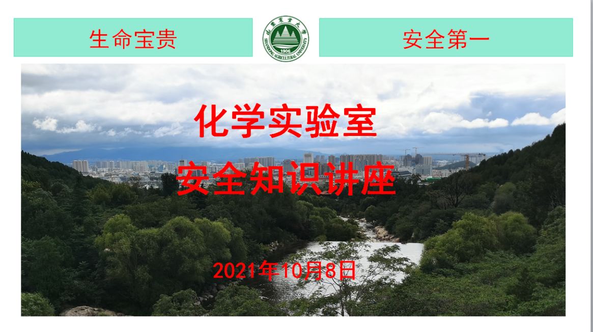 为深入贯彻落实山东省学校安全工作电视电话会议精神,响应学校安全大检查工作,进一步做好学院实验室安全管理,金沙js3833于10月8号举办了化学实验室安全知识讲座,讲座由院长艾仕云主持,化学实验教学中心汪建民教授对化学实验室安全知识进行了专题讲解。学院领导班子、实验中心以及各课题组负责人到会学习。