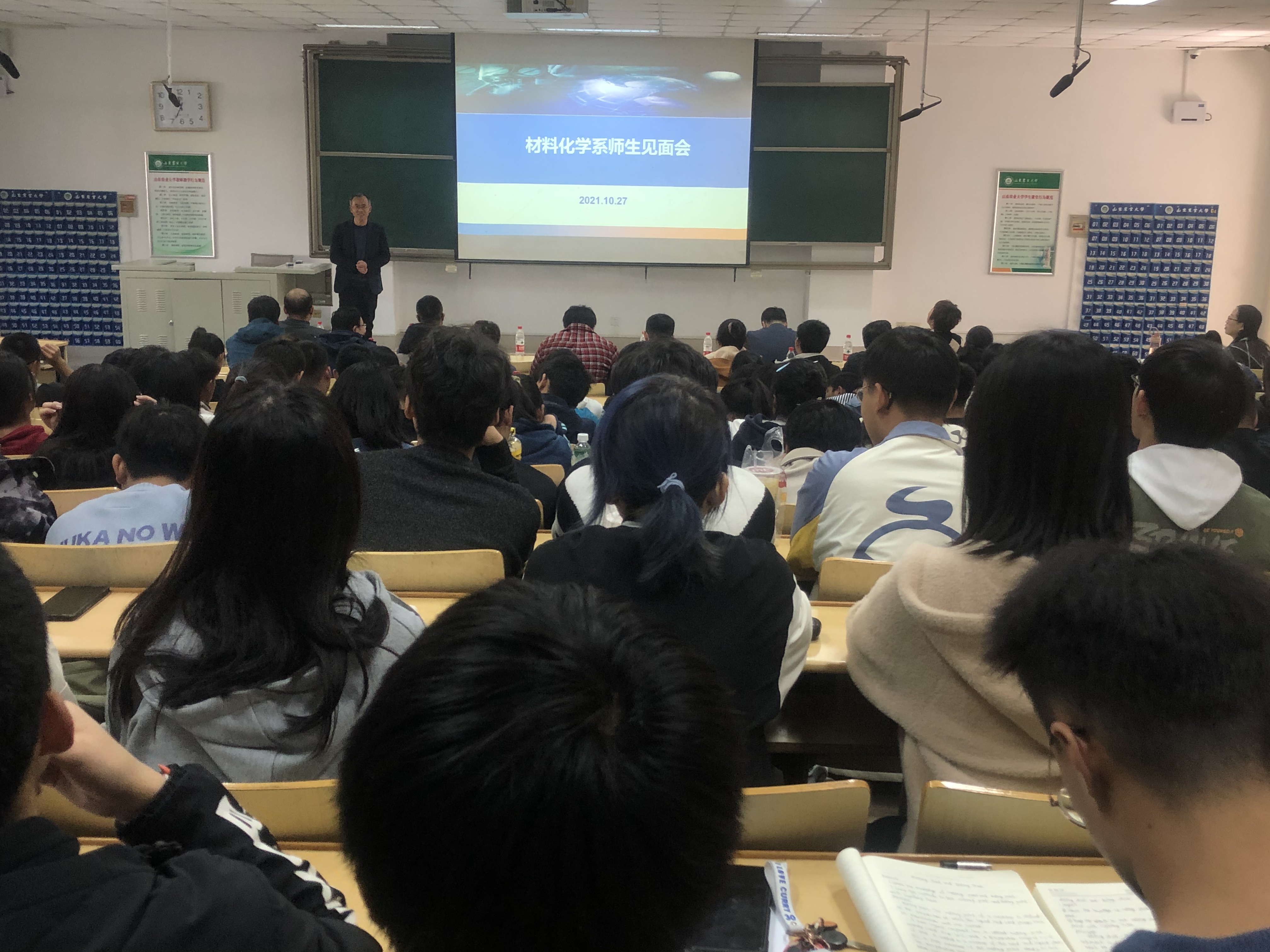 为增进师生之间的了解,加深同学对自身专业的认识,10月27日,化学学院于泮河校区N102教室举办材料化学系师生见面会。材料化学系所有专业老师与20级、21级材料化学专业全体学生参加。