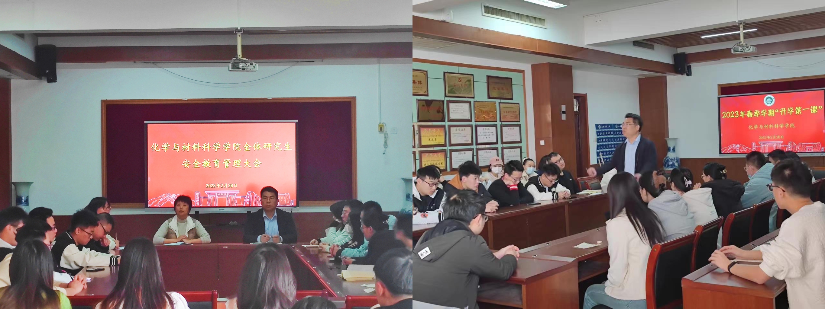 2月28日上午,化学学院研究生新学期“安全教育管理大会”和“开学第一课”在文理大楼811举办,学院党委副书记李华和副院长徐静出席并讲话。全体研究生共同参加会议,会议由研究生辅导员周晔主持。